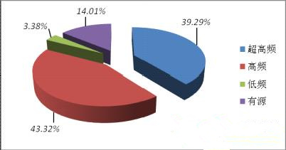 根据IIPA的市场调研结果显示,2010年-2012年超高频市场份额占比变化最大,从2010年的9.7%上升到2012年的18.9%,增长明显快于其它频段的产品。IIPA分析,超高频的发力主要源于产品价格的降低以及应用的领域不断拓展。超高频RFID的优点决定了其应用领域的不断扩大,大家都知道超高频RFID具有能一次性读取多个标签、识别距离远、传送数据速度快,可靠性高和寿命长、耐受户外恶劣环境等特点,得到了世界各国的重视和欧美大企业的青睐。