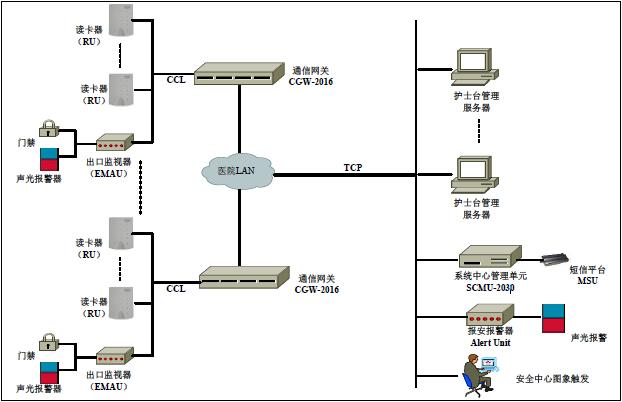 整合所有必要设备和可选设备,婴儿防盗系统整体系统拓扑如下: