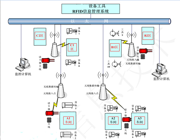 6、 设备工具RFID信息采集系统分布于仓库与生产现场;、