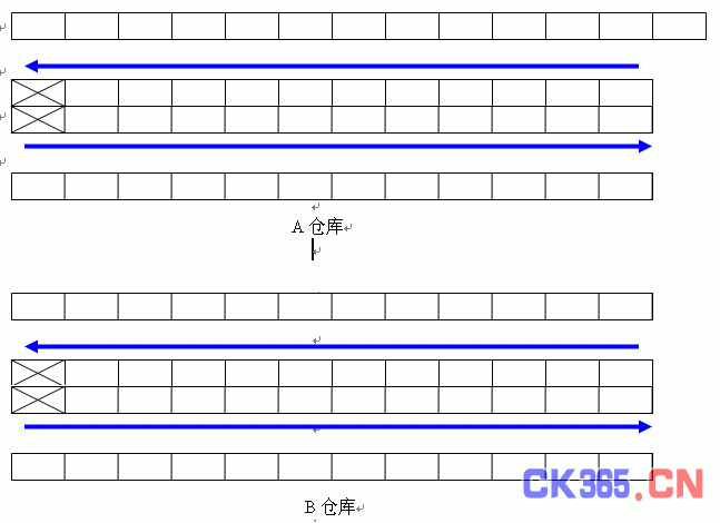 全体的拣货作业逻辑计划,拟采『接力式』拣货之功课方法来实现拣货功课。针对A库与B库采纳相同形走道路。每堆栈分为两个通道,每一个通道能够阁下双方同时拣货。货架上电子标签采一对多形式,每一个货架有12个储位,对应一个电子标签,所谓『接力式』A库应用49个标签,B库应用48个标签,A、B两库各自拣货互不滋扰。