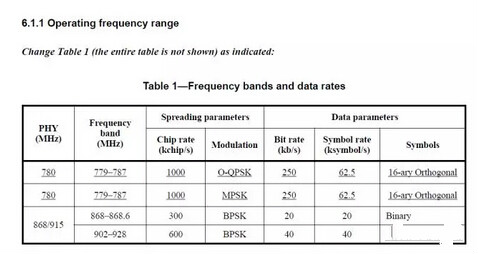 ZigBee、Thread、ISA100.11a等规范都以IEEE 802.15.4为基础加以扩展,一般的IEEE 802.15.4设备使用868/915/2400MHz频率。