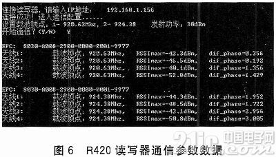 在足够长的一段通信过程当中,如图6所示,通过软件获取这段时间内阅读器接收到最大的RSSI值和相位值变化的平均值,经过处理计算,得到标签坐标。