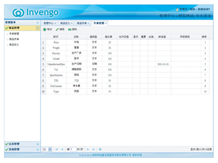 Web产品定义管理系统实现了以太网上商品定义及管理功能,其主要包括商品防伪溯源信息查询、字典管理、商品字典、商品定义、商品信息维护、商品展示功能。普通消费者不需要登录,通过防伪码能够查询商品的防伪溯源信息。采用角色管理用户的权限,便于用户管理以及系统操作安全。商品防伪溯源信息查询:通过防伪码查询商品防伪及溯源信息并图文并茂显示,包括商品验证信息及产品在流通过程中记录的信息。字典管理:管理所有商品的属性,即商品属性的字典。首先定义所有的商品属性,用户能够从中选择个别属性组成具体商品属性。