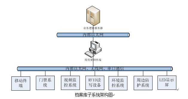 库房管理终端是档案库子系统的核心。与业务逻辑服务器进行通信,接收业务逻辑服务器下发的