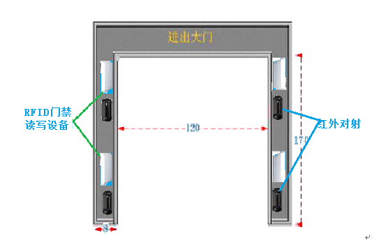 该读写设备主要是指安装在库房进出通道两侧,用于扫描识别进出库房物品的RFID标签数据信息