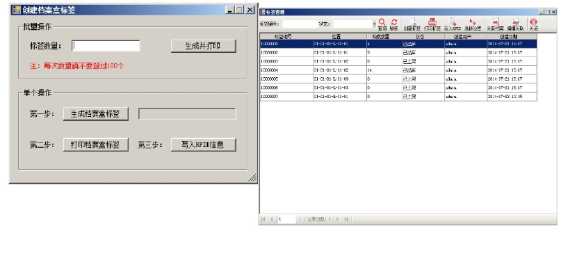 对于档案存放的方式不同,博能科技也提供了不同的管理方案。就档案袋来讲,博能科技应用适用于档案袋的管理标签,系统初始化档案袋编号以及内容等信息,并利用rfid打印机写入标签中,将标签贴于档案袋规定的位置,并将携带有电子标签的档案袋放置于工作人员的rfid管理站进行复核工作,整个管理过程需要的硬件设备包括档案袋电子标签、rfid打印机、rfid读写器管理站。对于档案盒的管理,与档案袋相同,将写好档案信息的标签贴于档案盒脊地步的规定位置,并进行标签复核,整个过程所需的硬件设备也与档案袋管理相同。