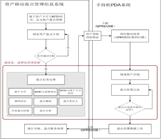 盘点工作进行时,资产管理人员根据实际需求定制盘点任务,盘点人员通过手持机PDA下载盘点清单,同时开展盘点工作,盘点结束后在在线的情况下通过网络将盘点数据自动传回平台进行存储分析,正是形成盘盈盘亏的数据对比。采用rfid资产管理系统清点资产,可实现快速盘点的工作,提高工作准确性。针对价值高的资产,可以单独进行盘点,降低资产管理风险,对于有辐射的资产,可以选择远距离条码进行盘点,减少人生损害。