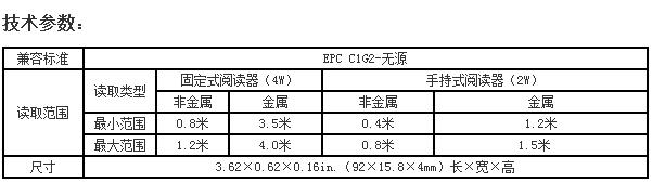 这款超高频RFID标签有2个小磁铁,便于安装和拆除。当被安装到金属上时,这款标签的读取距离大约为14英尺或4米多。