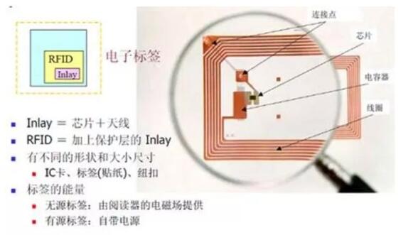 电子标签也称应答器或智能标签,它是一个微型的无线收发装置,主要是由内置天线跟芯片组成。