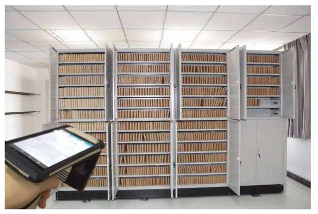 采用RFID技术进行档案资料的盘点,使得原来沉重繁琐的档案盘点工作变成一项简单快速的工作。档案管理系统发出盘点指令,库房管理终端发送盘点指令到移动终端,库房管理员根据移动终端上的提示,读取档案格和存放的档案的的标签信息,完成一个档案格的盘点操作,依次进行直到完成所有档案的盘点操作。