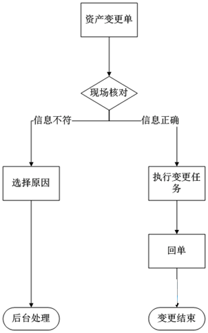 资产信息发生变更(含位置信息变更)时,通过手持设备跟踪资产变更工单。变更工单流程: