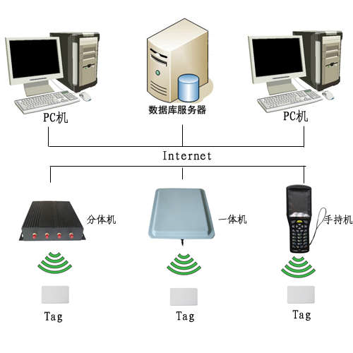 博能科技RFID仓储管理系统硬件部分主要由以下几部分组成:RFID标签、固定式读写器、手持式读写器、服务器、个人电脑等,各个设备主要是通过网络来实现相互连接和数据交换的。