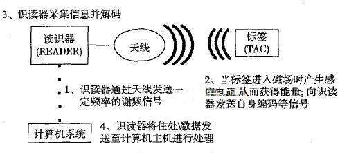 RFID是利用无线射频技术在读写器器和射频标签之间进行非接触双向数据传输,来进行目标识别和数据交换。读写器通过发射天线发送一定频率的射频信号,当射频标签进入发射天线工作区域时会产生感应电流,射频标签获得能量且被激活。射频标签将自身编码等信息通过内置发送天线发送出去,系统接收天线接收到从射频标签发送来的载波信号,经天线调节器传送到读写器,读写器对接收的信号进行解调和解码,并将信息送到后台主系统进行处理。