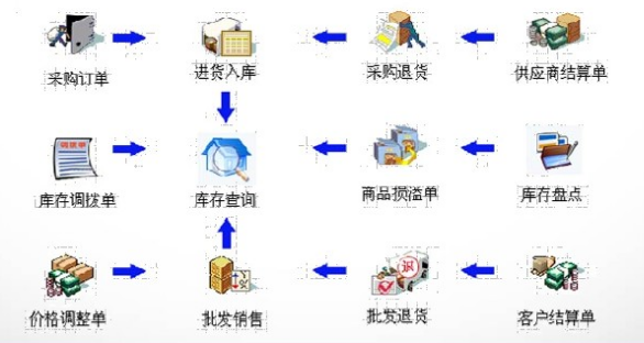 7、进销存系统:主要包括补货管理、补货作业管理、盘点管理等。