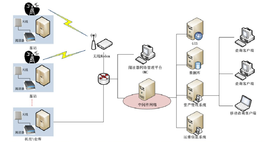 运营商的机房内具有多种类无线、有线网络设备,各种传输设备以及相关电源,除此之外,各种维护测试用的仪表仪器,备板备件也是琳琅满目。这些固定资产不仅数量大而且价格昂贵,采用人工记录、计算机系统备案的管理方式流程复杂,错误率高,实时性差。而运营商的基站数量庞大,分布分散,特殊情况还要进行拆闲补忙的资产特点,更增加了人工管理的难度。