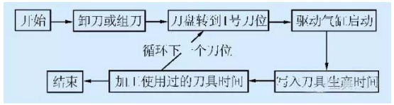 到刀盘需要使用刀具时,通过使用刀具或加工产品的具体要求,在系统中查找可匹配参数的刀具,确保刀具已经加工,如不符合条件需要先进行刀具的研磨工作。选取适合的刀具后将刀具安装到CNC刀库中,同时刀具的参数可通过RFID系统自动识别传输给机床,同时系统会记录刀具的生产时间,拆卸刀具时,系统自动记录刀具的加工时间,由此完成刀具的加工次数、使用时长,完成全生命管理,进行刀具寿命预警。