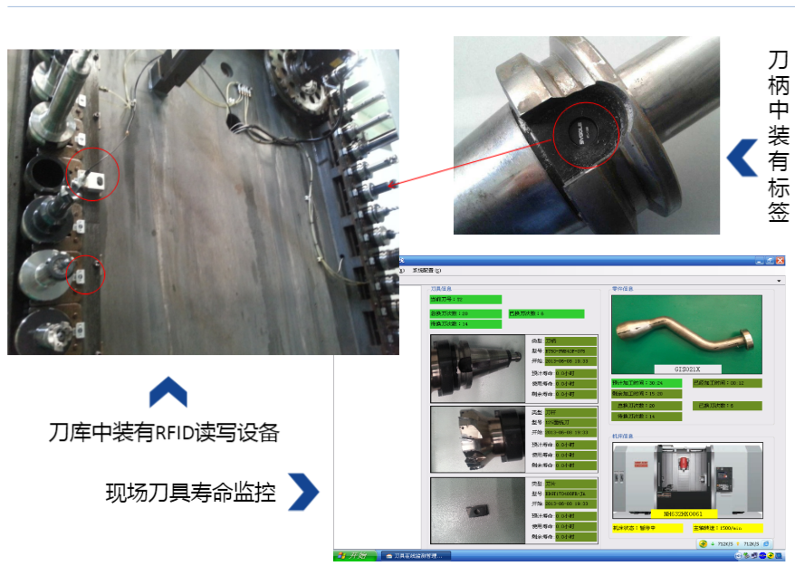 使用RFID系统管理机床刀具,可以实现刀具参数电子化传递,使刀具和RFID标签绑定为一体,不会遗漏,将刀具的参数信息和补偿信息集成到电子标签上,传输不会出现差错,电子标签受外界环境干扰小,可以进行信息化管理;同事RFID系统可以对刀具进行实时跟踪,对刀具信息进行实时查询,便于刀具统计管理,便于控制刀具质量和仓储管理;而且RFID系统可以对刀具的全生命周期进行监控,对刀具的使用过程进行有效记录,对刀具目标寿命进行合格管理,大幅减少工件报废数量,降低生产成本。