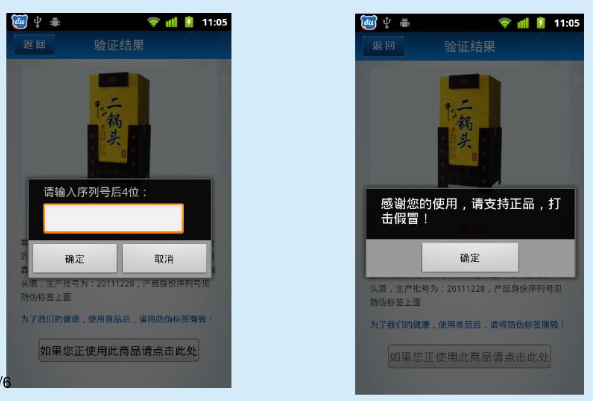 手机防伪追溯界面演示图: