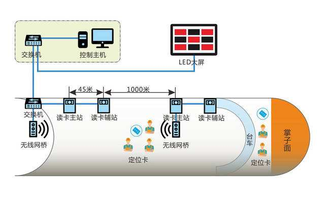 博能科技设计在隧道入口处放置人员通行的摆闸设备,采用人脸识别进出,识别系统进行联网,软件系统具有实名制统计人员人数以及身份的功能,同时可以在LED进行显示。隧道施工通常将隧道分为几个分段。隧道初始口距离山体表层不远处施工方便且距离安全出口较近,施工视为安全地段,第二阶段是20米左右的已挖完地带,此地带未喷支护,俗称掌子面,会稍微放置一些挖掘设备等,第三阶段50-60米属于正在挖掘的区域,这段是最为危险的地区,这段会有爆破的需求,会产生塌方的危险,第四阶段则为尚未挖掘的区域。每个人施工人员发放一枚RFID电子标签,安装在安全帽中。标签内具有人员姓名、工种等需要写入的信息。从隧道入口处开始,每隔30米放置一台识别半径最大为50米的RFID标签识别基站,用以识别电子标签信息,并进行实时定位确定。中控制的电子大屏联动定位软件系统,在屏幕上分段显示各个施工区域的人数、分类等,保证实时掌控洞内人员的配置、数量以及位置情况。当有意外发生时,救援人员可根据这些信息实时掌握洞内人员被困信息并及时采取救援措施。