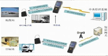 在商品运输过程中,可以在长途运输的货物和车辆贴上标签,在运输的线路上布设一些安全检查点安装接收转发设备。当接收设备收到标签发出的信息后,可以将商品当前的情况以及所在的地理位置等信息上传至卫星系统,系统再借由网络布设传回调度中心,上传给数据库。这样可以使企业直接了解目前有多少货箱处于运转途中,运转的始发地和目的地,以及预期的到达时间等,方便对在途货物进行管理,同样便于货物的发货人和收货人对货物信息的掌握,并对收货时间进行调整。